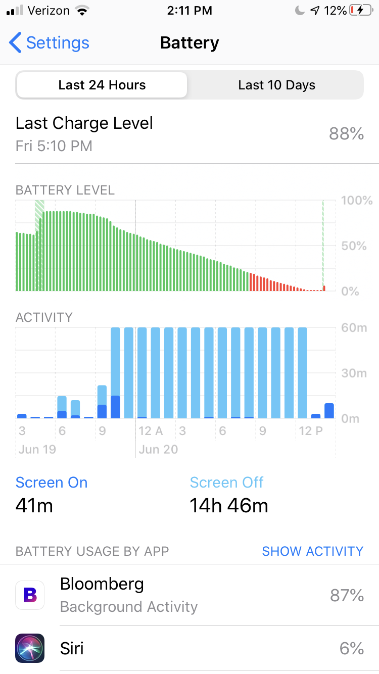 I then decided to check the battery life on my 10.5 iPad Pro. Normally I always turn it off during the night but I left it on yesterday to do the battery test. The result: I lost 24% in 14 hours. That’s why I decided to create this new thread.