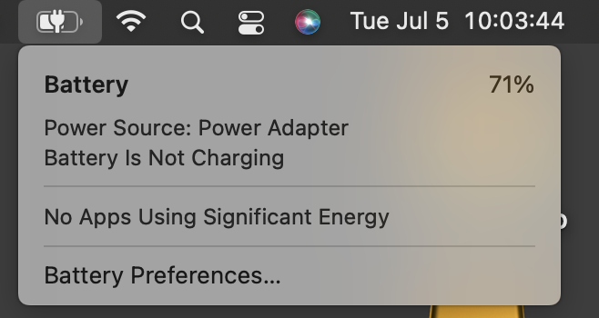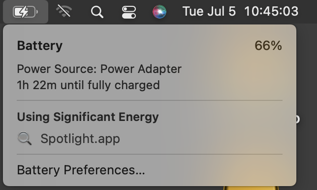 I’m not concerned about the sudden battery drain issue this morning as that was likely an issue with the charger or something outside of the MacBook Air M1. BTW, Monterey is up to date with the latest updates. But I do want to figure out how to get a low battery warning. That tiny battery icon in the Menu bar is of little value since it is so small, and when running with charger connected I never worried about it anyway. Preferably I would like to know if the battery drops down to 20% or less since it is usually plugged into the charger. That would give me enough warning to see why ut isn’t staying charged and correct that issue. Besides, I don’t like dropping below 20% on any battery for any device.
