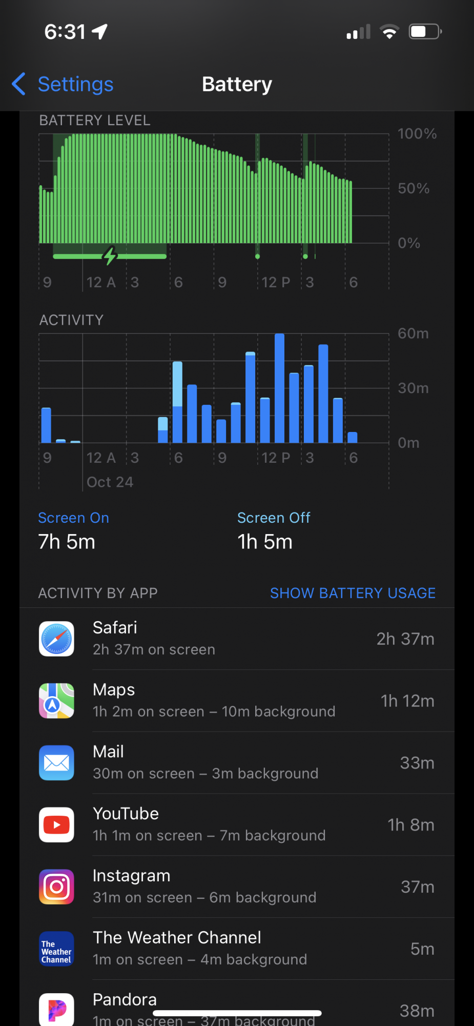 Do you have an Apple Watch paired with your phone? Are you finding a lot of battery drain in standby? Can you post a 24 hr battery usage chart with "SHOW ACTIVITY" selected so that the apps are shown with the amount time.I am experiencing battery drain and very warm device when using safari on my replacement 13 Pro. I even downloaded and activated AdGuard last week. Safari is definitely the culprit. Any suggestions?