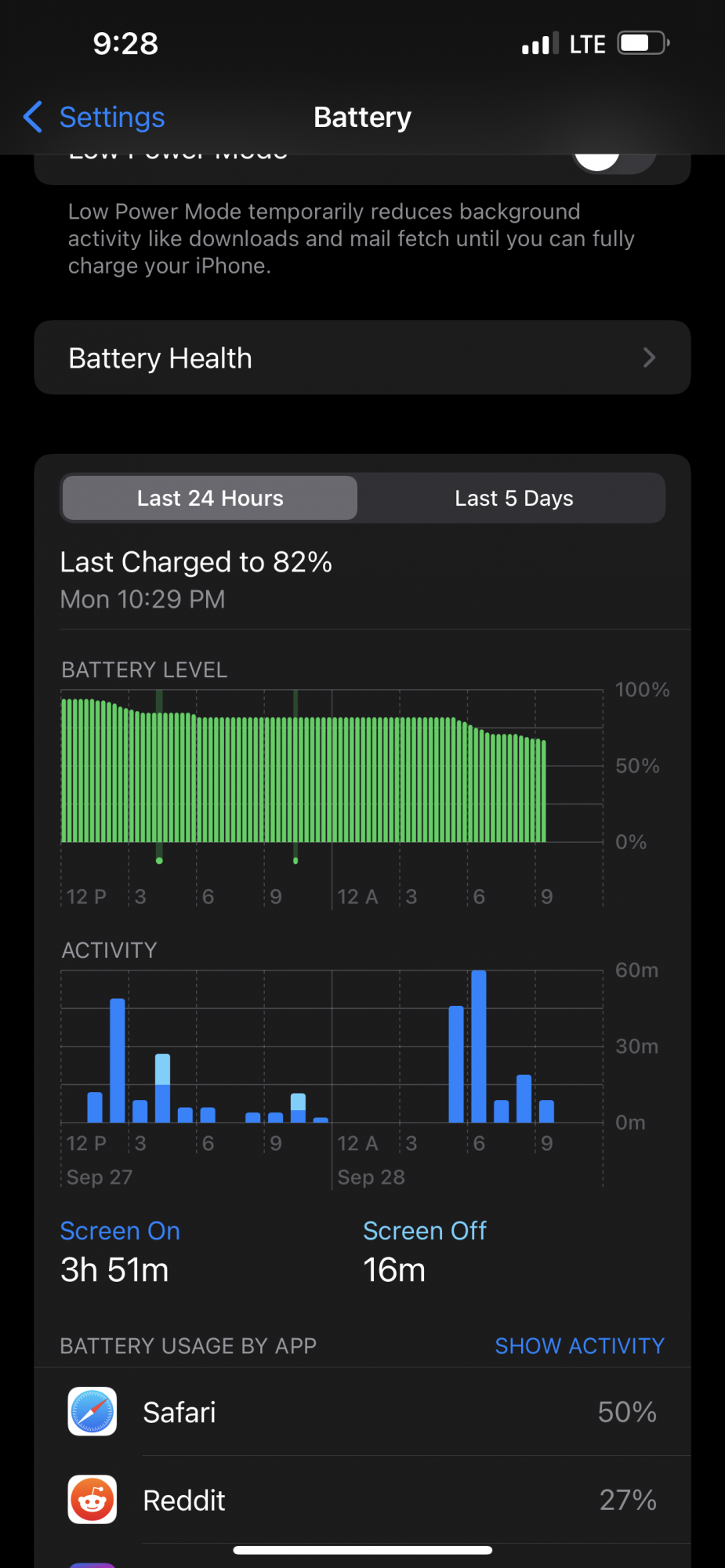 - I'm using LTE, refresh up to 120, bluetooth off, wifi on