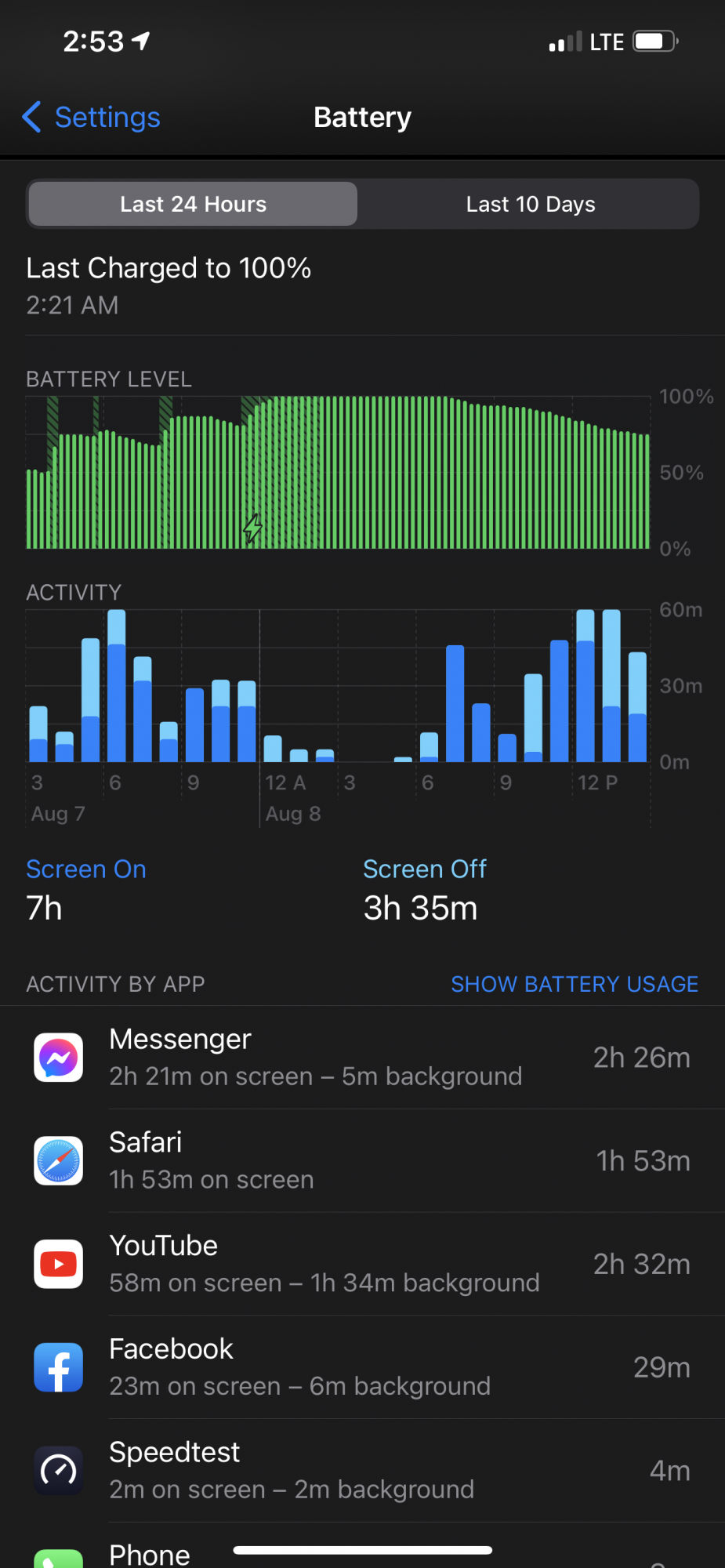 I'm generally careful with my phones & only charge it overnight daily / every other day - it's been generally lower usage at home this year & has never seen 5G.