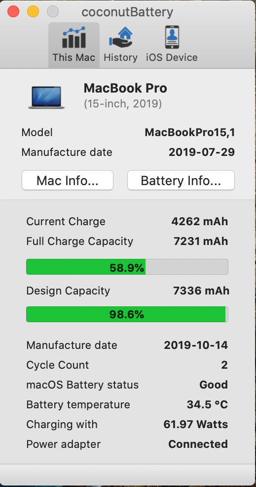 1. Apple doesn’t use Coconut Battery. Their internal diagnostic result has near 0 correlation with Coconut battery. However, Coconut battery is way more accurate than any tool Apple will ever use. What I’ve seen is as battery health degrades below 100%, it actually shows a far higher figure than the real health. That’s why you only get 5 hrs with 93% health. Whereas a truly healthy brand new battery might have given you 7-8 hrs.