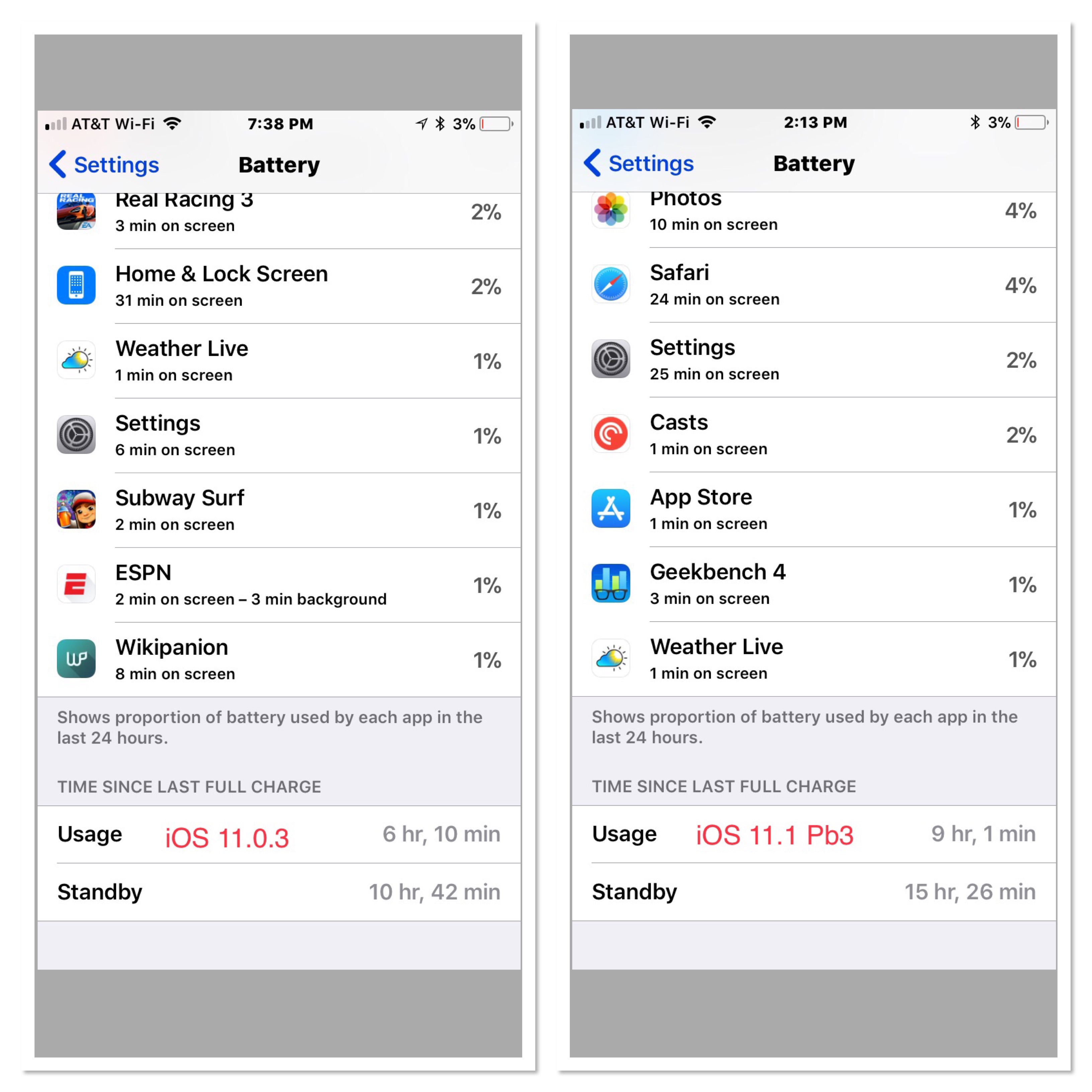 All devices have been reset and installed as new in an attempt to fix other errors / crashes. A reset did help on battery life but it is not close to what it was on 10.3.3