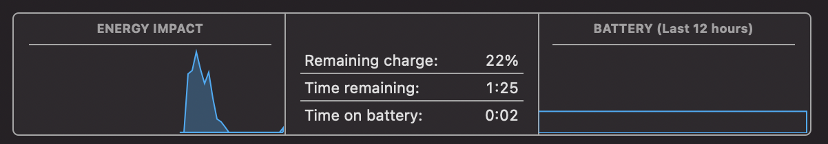 Thinking the same thing when it started happening to me. Hopefully the next Big Sur update is just around the corner.Yeah and that may or may not be an accurate estimate. I used to do a bunch of stuff and be surprised at how much battery was remaining. Now it's like my iPhone 8; runs down 1% every time I check. It just dropped to 92% in the last minute or 2. I'm literally getting Intel Mac battery life out of this thing now.