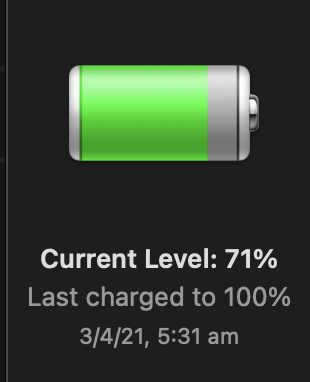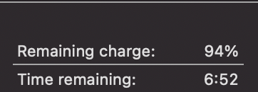 The next morning I lift lid and get back to work. Typically it has used maybe 1% overnight but frequently zero. I wind up having to plug in after about 5 hours as I am down to about 10% - I don't like letting it get lower because I want enough charge in it to take it on the road.