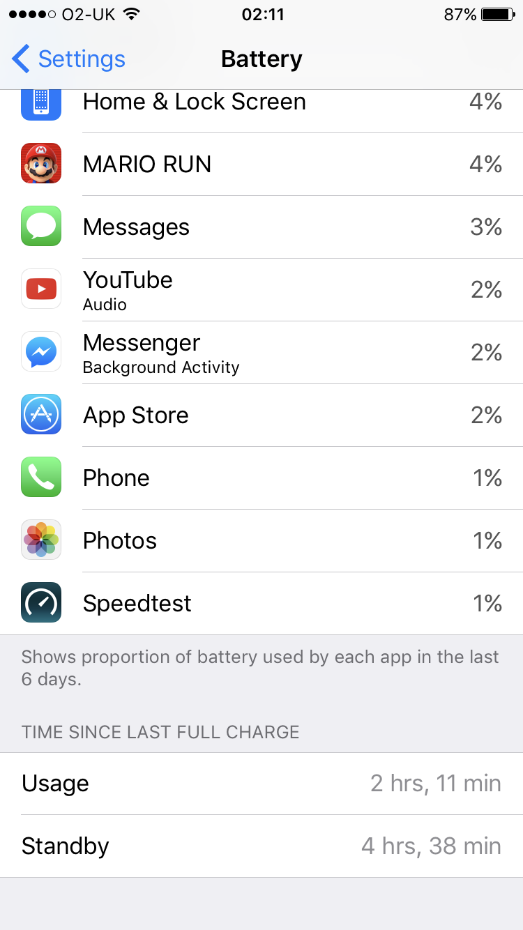 Next time I need to use my phone for 10/11 hours straight out of 13/14 hours I'll post you a screen shot as evidence ok ;) .. until then I couldn't care less if you believe the usage Im getting or not fella.. it's just doing slightly less than Apple says it can do :)