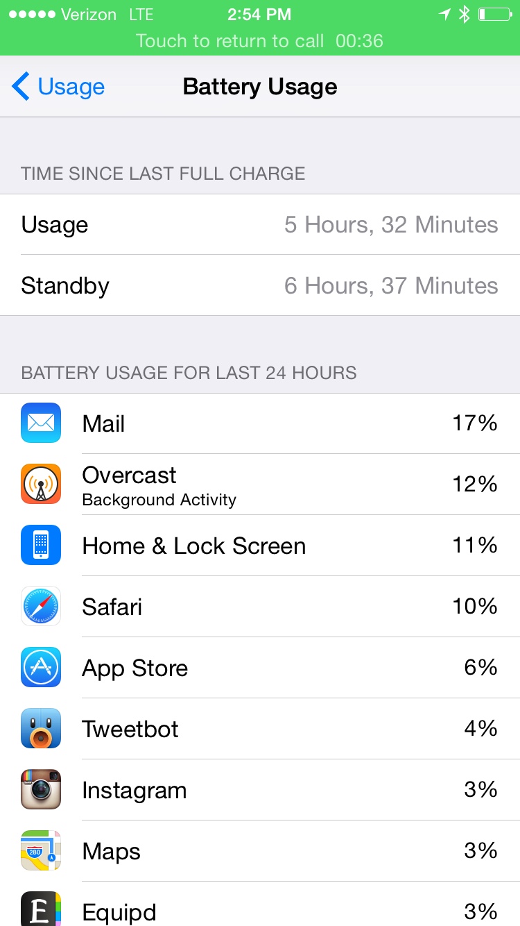 Has relogging in iCloud helped anything? If this phone got battery life like my iPad mini with Retina, it would be the PERFECT phone. I get over 10 and a half hours of usage from that thing at times.