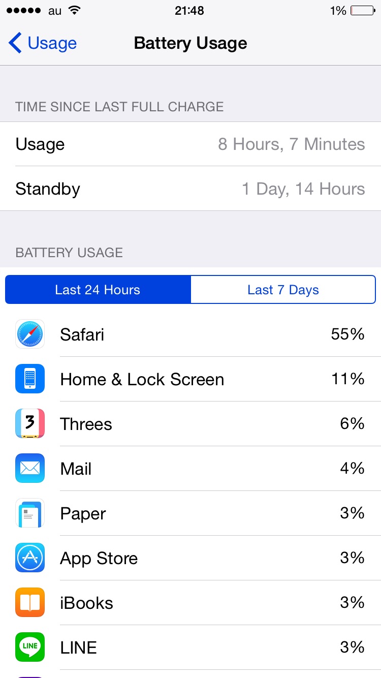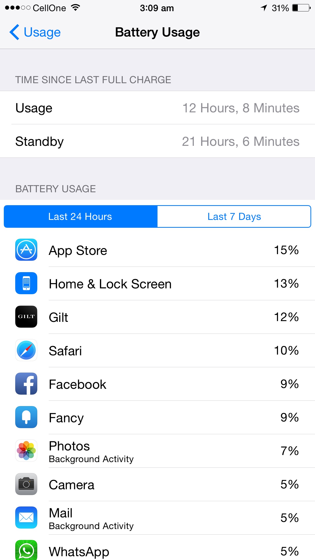 Here's my 6 plus. Is it normal to lose battery during standby? During my 2nd charge I unplugged it and let it sit overnight for 8 hours and battery was still 100%. Now every time I let it sit overnight it loses about 2-3%. I didn't change anything in the settings. Push to 2 emails. Background app refresh off,wifi&data on. Bluetooth always off. Bright set to auto. Location services on for my core apps. Also I could use safari for about 30-40 minutes and not lose percent, now I'm losing about 3% during less time. I'm on iOS 8.0.2