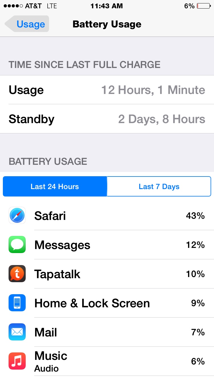 left my 128GB iphone 6 on my desk and went to bed last night, battery was around 75%, woke up and started using heavily (lte off just wifi, brightness at 45%) here's my screenshot what you guys think?