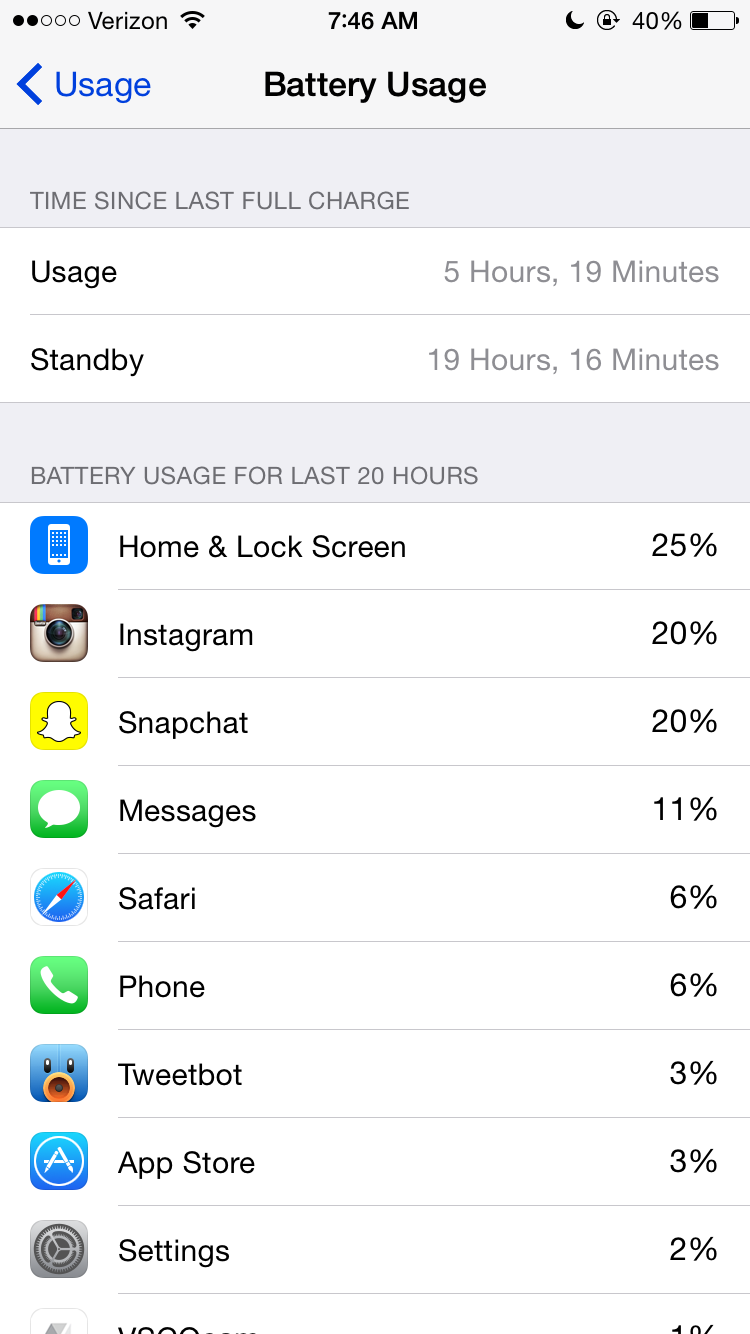 I've been getting about 6-8 hours usage of onscreen time on wifi with my habits of mostly surfing safari some tweetbot, Instagram, FB and email with brightness less that 50%. LTE knocks my usage down about and hour or two. If I play a demanding game like a GTA or MC5 the battery is gone in 2.5 hours easily! Very similar to my iPhone 5 on iOS 6 a couple years back!
