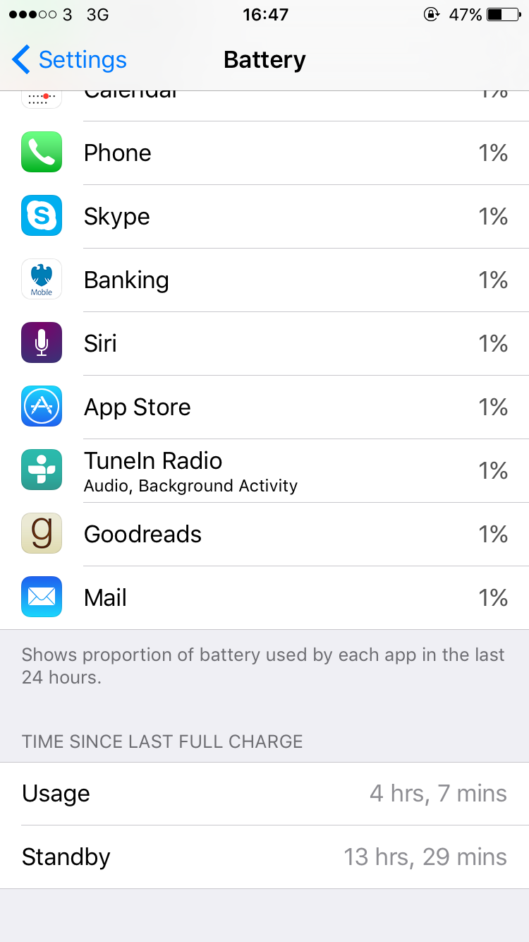 Wondering if India's cellular quality/coverage is similar to Pakistan? Reason being, I go to places like Karachi and Lahore for work and use a local sim there. The phone's usage and standby always are much much lower compared to when I'm in a place like Dubai which has excellent cell quality and coverage, or when I'm at home in Boston, which has reasonably good coverage in most areas. In Pakistan, there is coverage just about everywhere, even remote villages, but the signal is generally low, even in urban areas so the phone spends a lot of battery power trying to keep up a solid signal.Thanks for your reply man, yes I always have my brightness at around 25%. Turned off background refresh, location services and notifications too. I'm from India and coverage for LTE is not in my area so disabled LTE. Even then I'm getting only around 3.5 to 4 hrs only.