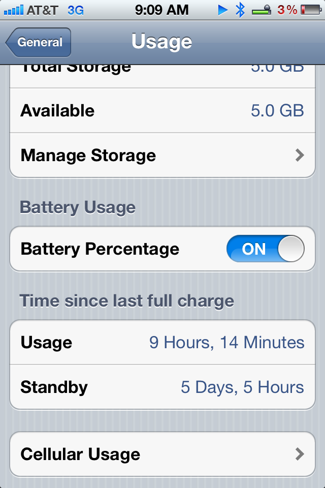 That's a lie, sorry. You're not getting 9 hours usage with 5 days standby on one single full charge. What happens is, when you plug in your phone to charge at say 30% to about 70% percent, your usage stats don't reset.