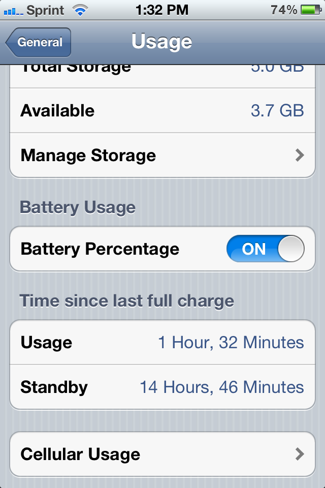 Key thing, look at the difference in standby vs. usage. I am using the phone more now, yet the usage is exactly what one would expect from an Apple battery. On my other 4S, these numbers were within 20 minutes of each other after 8 hours, and that was the 20 minutes I tested it in Airplane mode.