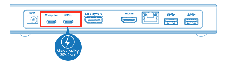 - I'm fairly certain those 15 W refer to the extra USB-C port, not the one used to connect to the Mac - which should be at a minimum 60 W."Additionally, the power output of the rear USB-C port raises the bar to 3.0A (15W) of power, even surpassing the iPad Pro's supplied 12W charger. iPad Pro users can now seamlessly charge 25% faster through the USB-C dock compared to the factory charger, making it easier to top off the battery even while iPad Pro is running full throttle!"