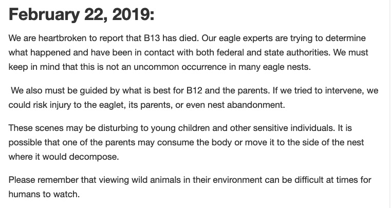 Even after fledging, an eaglet must learn to fly well, where to fly to in order to catch their own food, and it needs to be shown how to hunt successfully. In the meantime the parents continue to provide some food while encouraging independence of the fledgling(s), which of course would rather be fed than have to make their own way to nail down some elusive chow that's still on foot or swimming or on the wing itself.