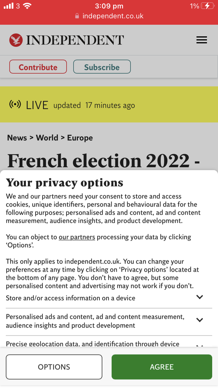 I am not seeing the cookie consent page on this site if using Safari and Adguard but I do get the consent form on FF. Will have to see if I can tweak adguard to work better. It is a pita that all of these adblockers work better on Safari than any other.By the way, the high water mark for nasty news websites is https://www.express.co.uk/