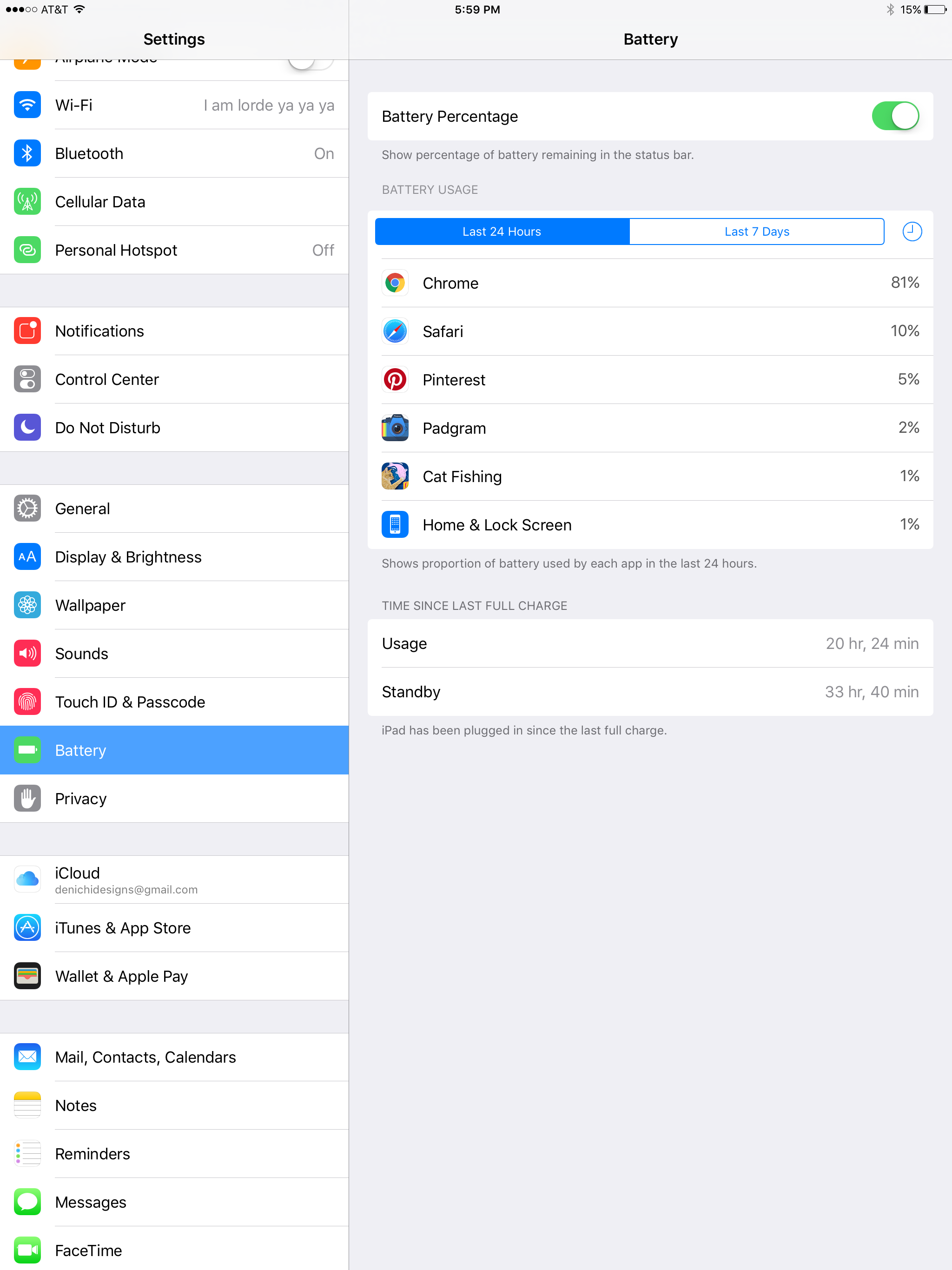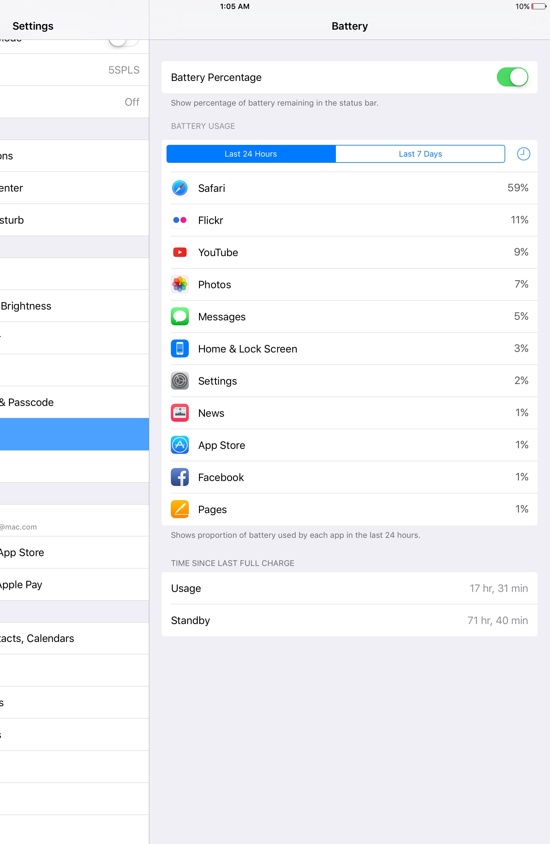 The title says it all. The iPad pro has the best battery life in any iOS or Apple laptop I've ever used period. I've been using the iPad pro for a week now and I've noticed how I didn't have to charge much, so recently after my last full charge I've decided to use it as I normally would till the battery life is at 10% then screen shot the usage.