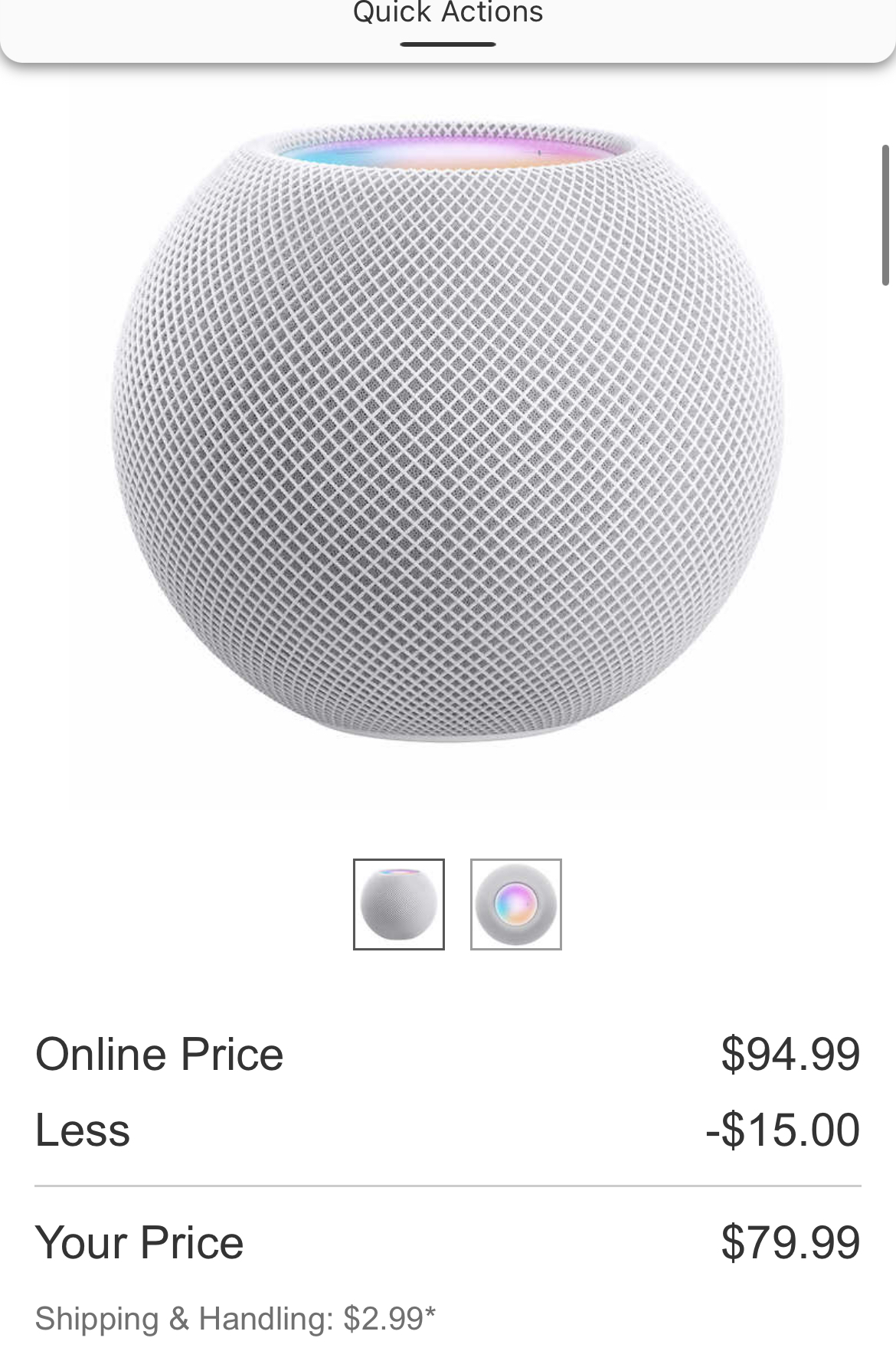 Stock is in limited supply, and you may only be able to pick up the HomePod mini locally if delivery is unavailable. For alternate sales, Costco members can get a HomePod mini for $79.99 and B&H Photo has the HomePod mini at $94.99.