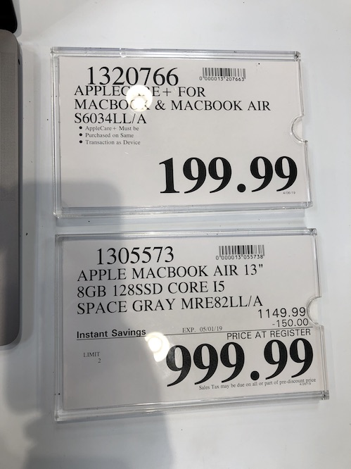 Costco sells Applecare+ for the Macbook Air for $199. The SKU at Costco is 1320766. While Costco requires the two to be purchased together, they have them priced individually in the computer. Have BB call your local Costco and verify the price of AppleCare+. Now you can get the Air for $949 and Applecare+ for $199.