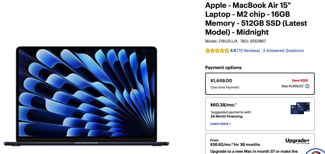 Shows $1399 at BestBuy for me. Even better. Wish BB would adjust their open-box prices when new are drastically discounted because the open box are almost the same price as new instead of also being drastically reduced in price.They also have the 15 inch with 16gb and 512 storage on sale its just not advertised you have to search it out. I think it's only in midnight. 250.00 off. You have to get their rewards program which is 50.00 but when you check out they are now giving it to you for free for one year so you get the 50.00 back. As far as I can tell. View attachment 2303247