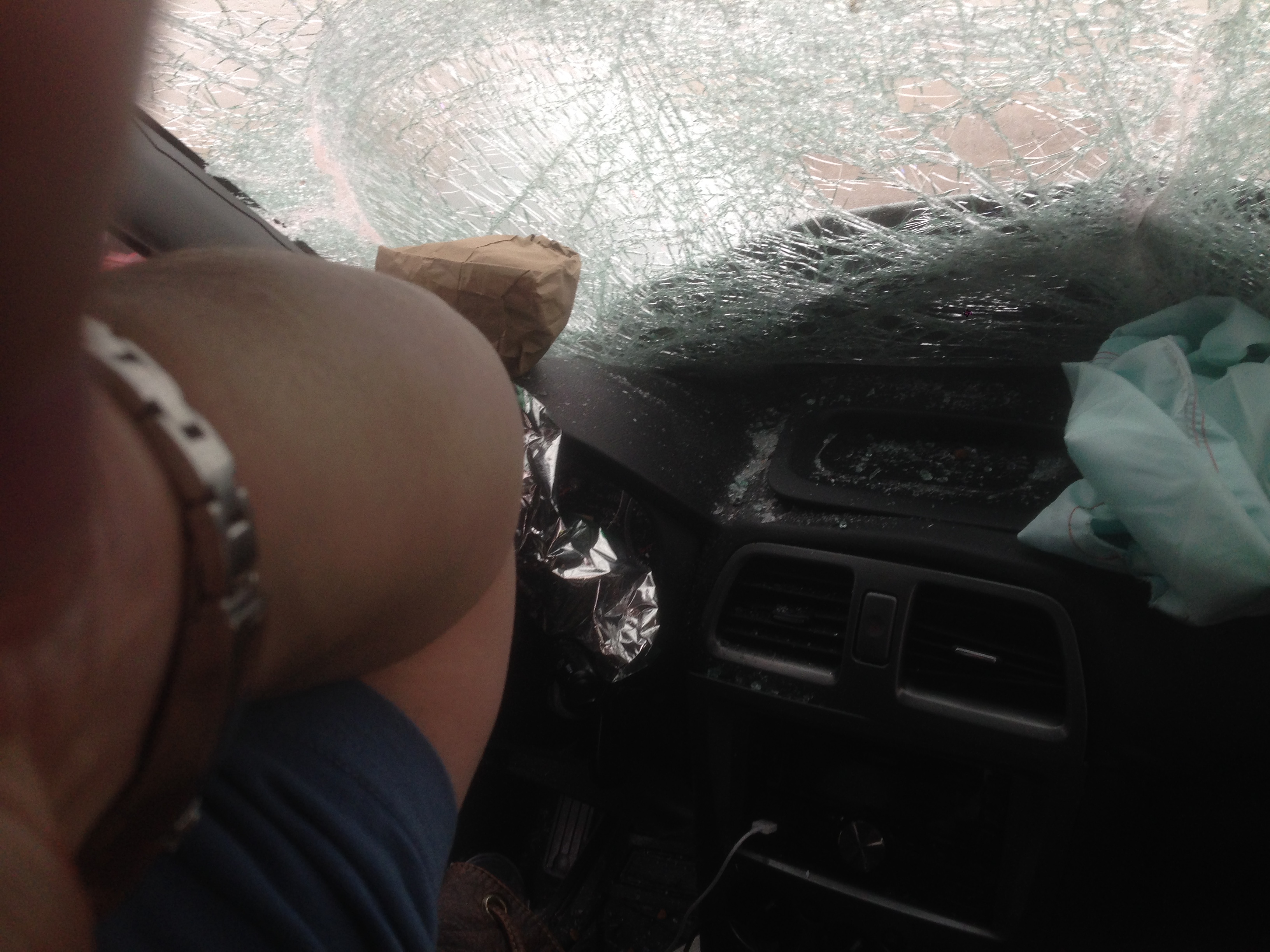Picture of the dashboard where the phone was sitting, taken by accident after I woke up in the car. Fire crews had to cut out both doors on my side to get me out.