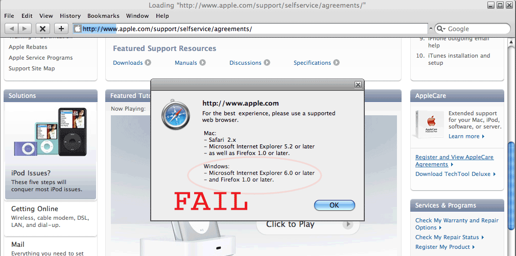 Apple web site fail.