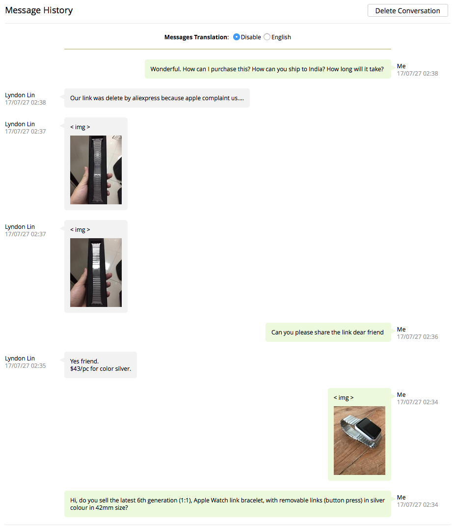 Message them that you want an apple watch link bracelet 6th generation and they will send you pictures in chat and let you know how to make the exact amount of payment.