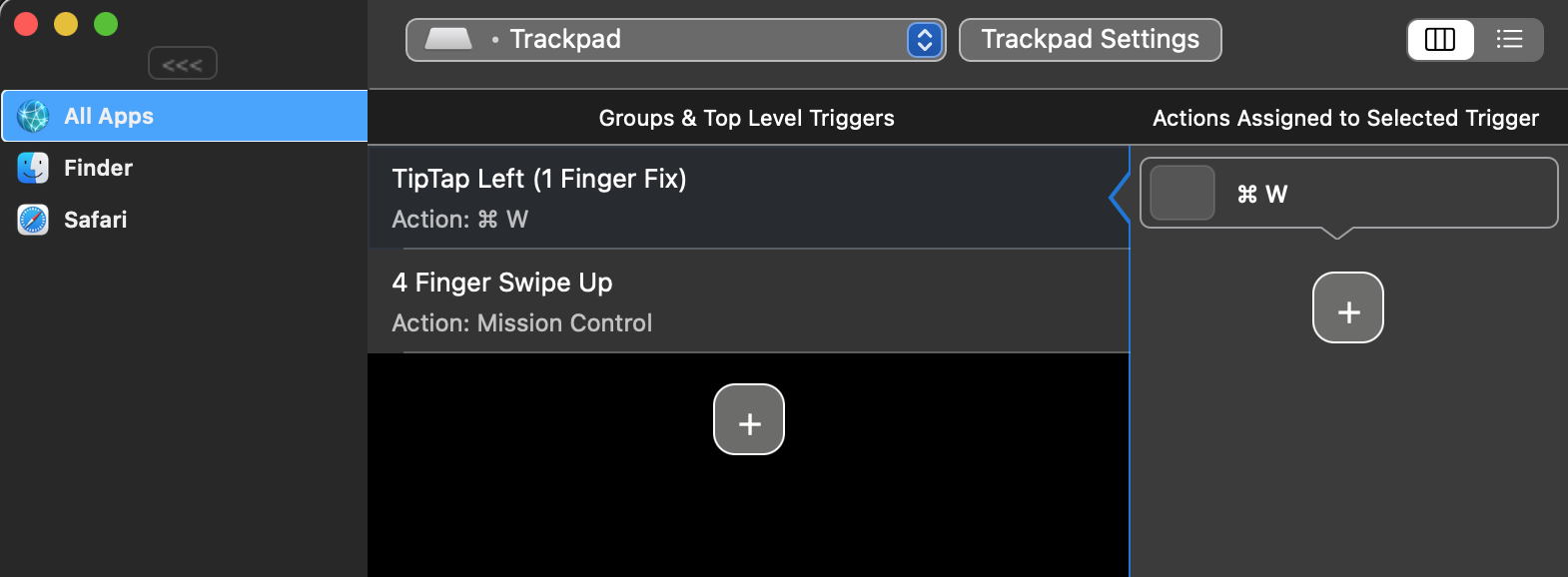 Then a bunch of touchpad shortcuts for Safari, as below--- gives you easy touchpad control to open/close tabs, open link in a new tab, go to Tab to the left/right, go back/forward all with easy finger taps..