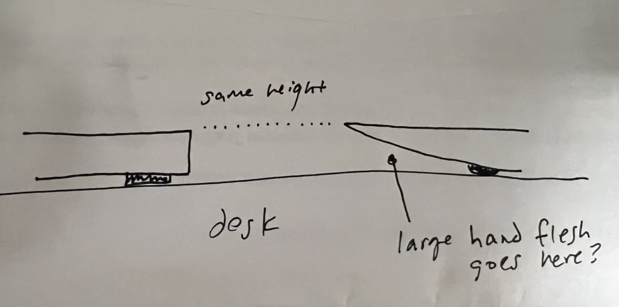 ^^^^This. Also, a larger surface area would help to spread the pressure of any contact from hands or wrists. So what they are saying makes no sense logically.Confused how this is possible, are you saying the flesh of large hands is able to wrap around the thin wrist rest and occupy the space between the desk and the front edge of the computer, rendering it more comfortable than a design that’s equally far from the desk (and equally sharp at the edge), but doesn’t have a large gap between the wrist rest and the desk for the hand flesh of large hands to occupy?