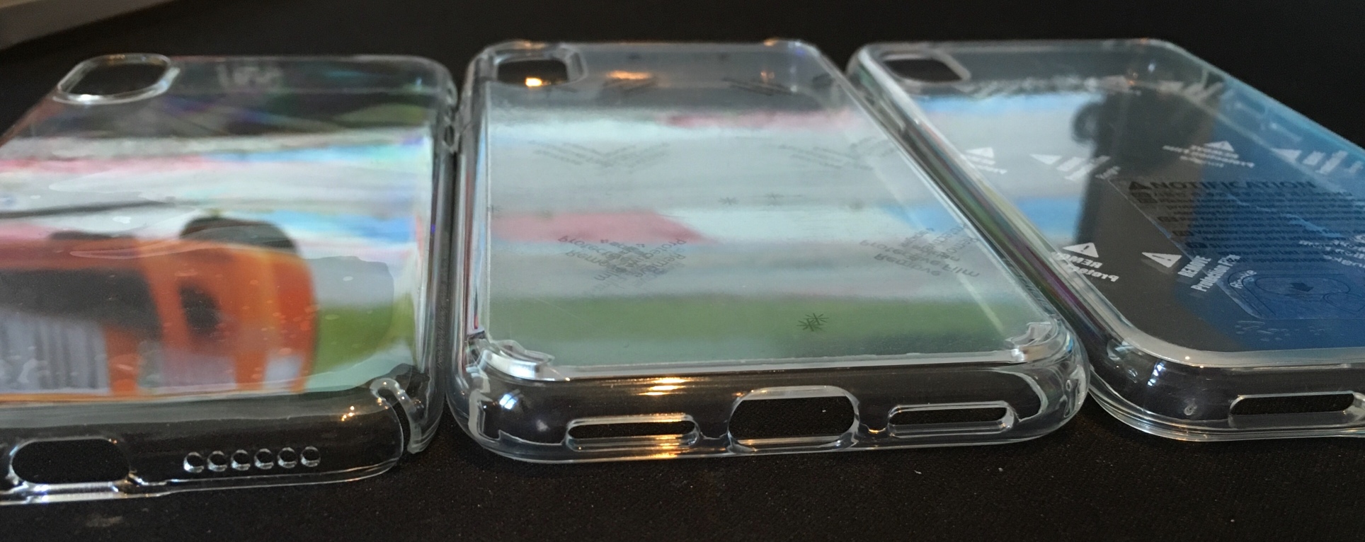 Sure. Left to right: caudabe lucid clear, spigen ultra hybrid, ringke fusion.