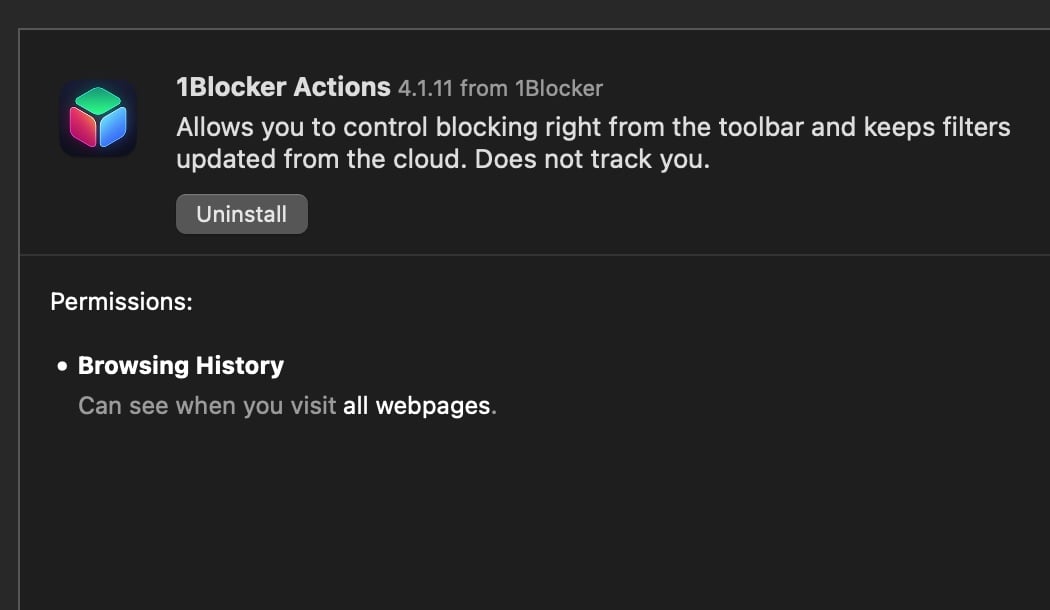 1Blocker does have an additional "extension" component for blocking YouTube ads, but you do NOT have to enable it. OR, you can just enable it to work on YouTube's website and have Deny access to any other website.