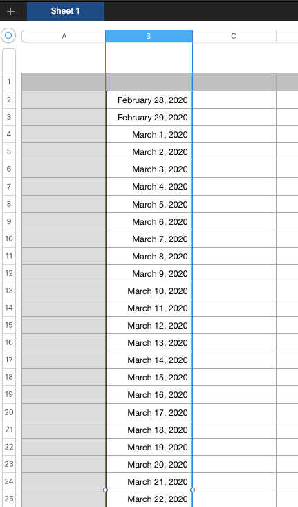 The basic things I'm wanting to do is add dates to a bunch of cells in a column, from February 27th to May 27th, but don't want to type every single date in each column one by one.