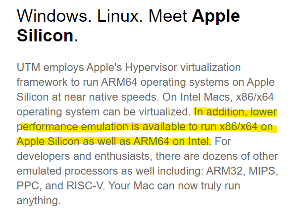But, that said, if I want to run the odd not-too-intense windows game: Should I run a virtual machine of ARM copy of Windows 11 in Parallels and let the Windows VM do the x86 emulation? Or should I run it in an x86 copy of Windows and let something like UTM do the x86 emulation directly?