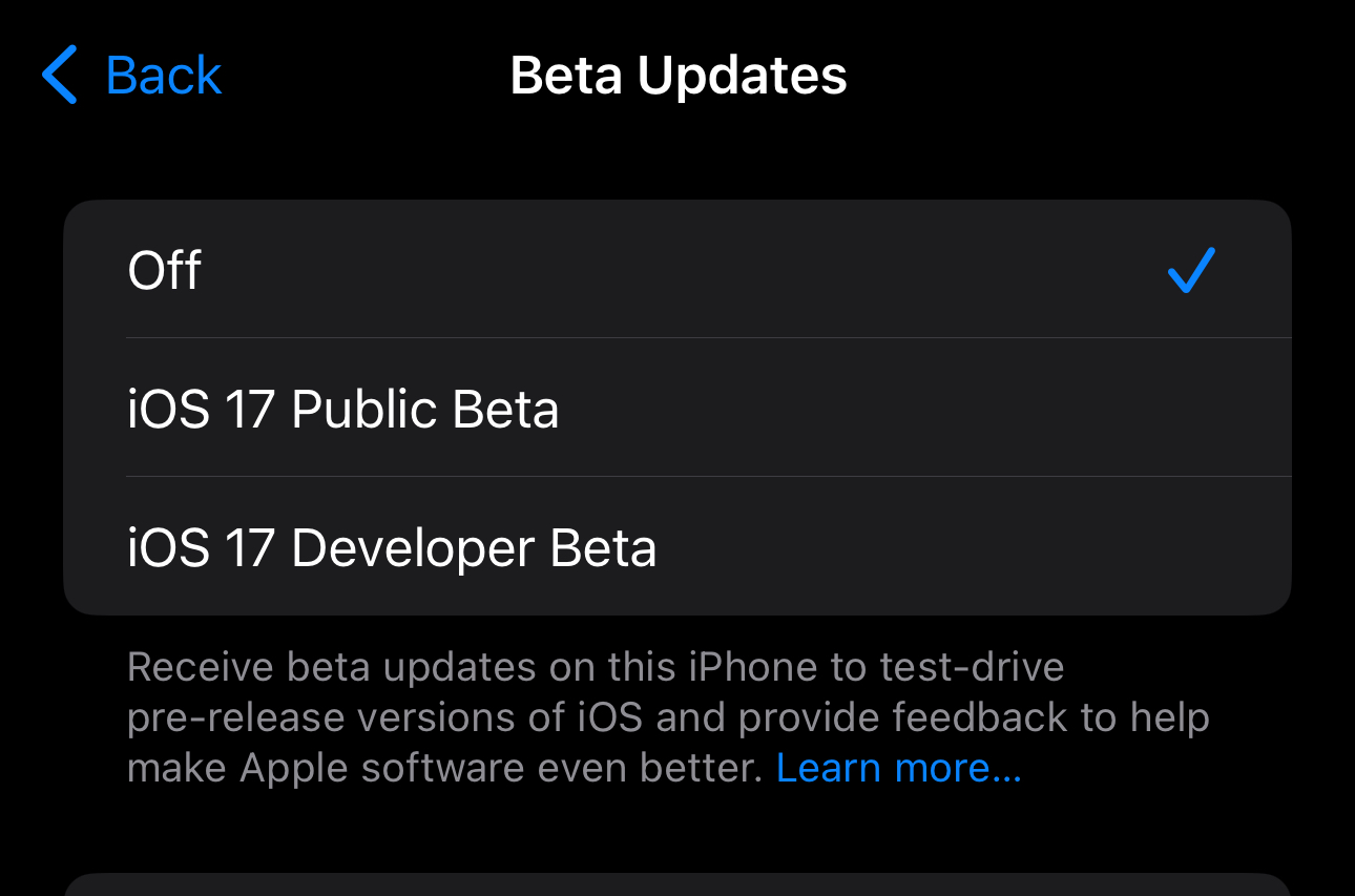 I downloaded Beta iOS 17 now I turned them off. So I have the actually have IOS17? Or is it the beta version?