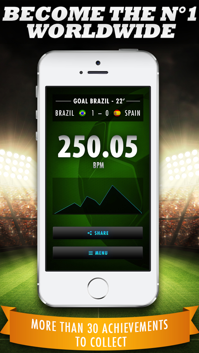 During matches, the user receives notifications of goals, red cards, penalties, inviting him/her to shake their iPhone to achieve the best score. Each team has its personalized anthem that rhythmically accompanies the user throughout the Shake!