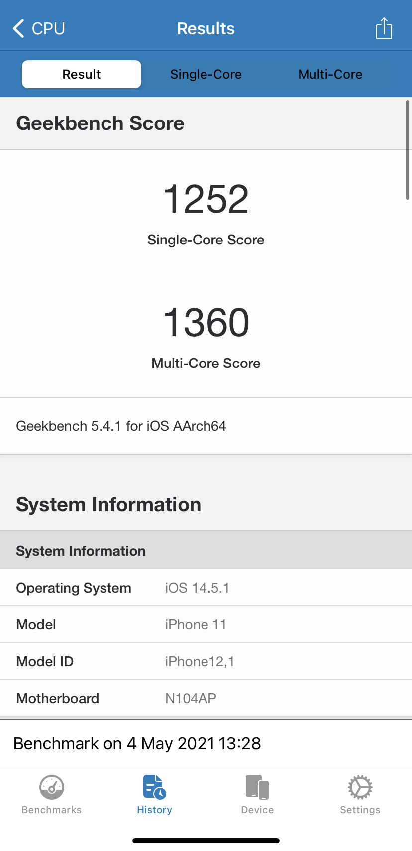Updated from iOS 14.5 yesterday to iOS 14.5.1 on my iPhone 11. After the update finished, I was playing CODM and noticed the frame rates were horrible. I checked my settings to make that it was set to the max frame rate, which it was. I then ran a geekbench test, and the scores I got were horrible for the multi-core. I then rebooted my phone to no avail; it was still super slow in games and in opening apps. I then proceeded to do a clean install which seems to have fixed the issue. Now my geekbench score is normal, and performance is what it used to be. What is going on, Apple? Anyone else having this issue? Upload a screenshot of your geekbench score on iOS 14.5.1 and tell us what device you have.