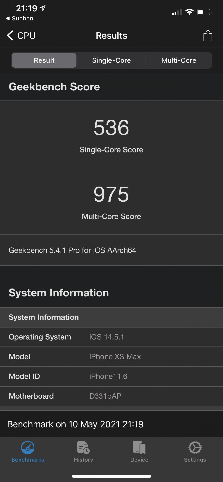 Geekbench app is buggy on iOS 14 and has been from the start. Do your research.
