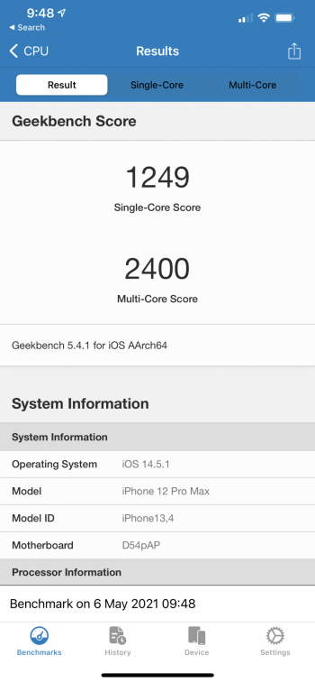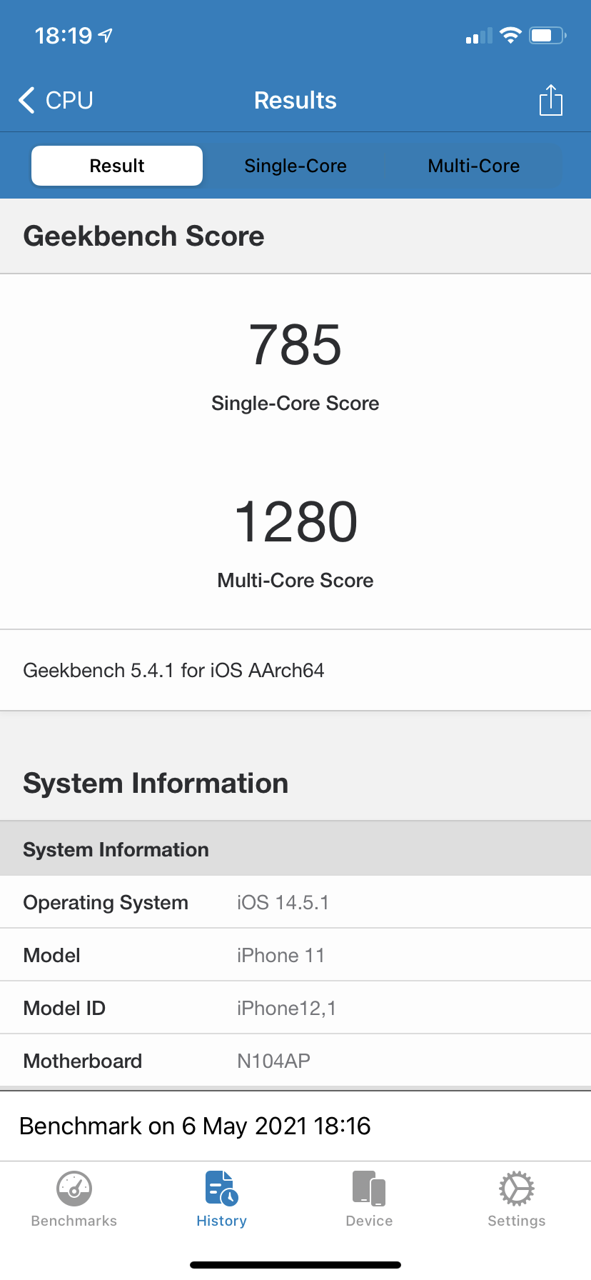 My XR under 12.4.1 - 1113 SC, 2536 MCUpdated from iOS 14.5 yesterday to iOS 14.5.1 on my iPhone 11. After the update finished, I was playing CODM and noticed the frame rates were horrible. I checked my settings to make that it was set to the max frame rate, which it was. I then ran a geekbench test, and the scores I got were horrible for the multi-core. I then rebooted my phone to no avail; it was still super slow in games and in opening apps. I then proceeded to do a clean install which seems to have fixed the issue. Now my geekbench score is normal, and performance is what it used to be. What is going on, Apple? Anyone else having this issue? Upload a screenshot of your geekbench score on iOS 14.5.1 and tell us what device you have.