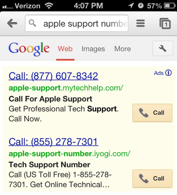 So I asked him to google apple support number and give them a call..