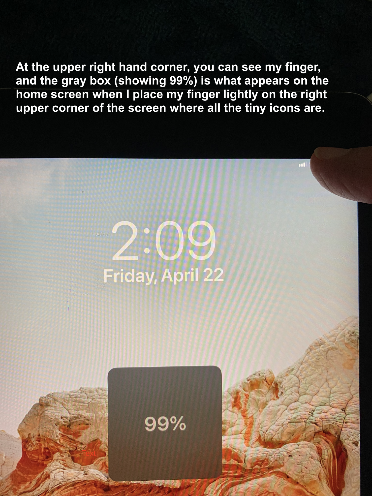 Ok, I got a new mini iPad 6 and I'm still learning my way around it. On my old mini iPad, I am able to touch the screen in the upper right-hand corner, and a gray box will drop down showing me the time, battery percentage, wifi connection, etc, when I slide my finger across each tiny icon, which I have a difficult time seeing otherwise. I would like to see this happen with the new mini iPad 6 also. Can anyone tell me how to get that drop-down gray box to show up? I'd be much obliged! Thank you. -Kathryne B
