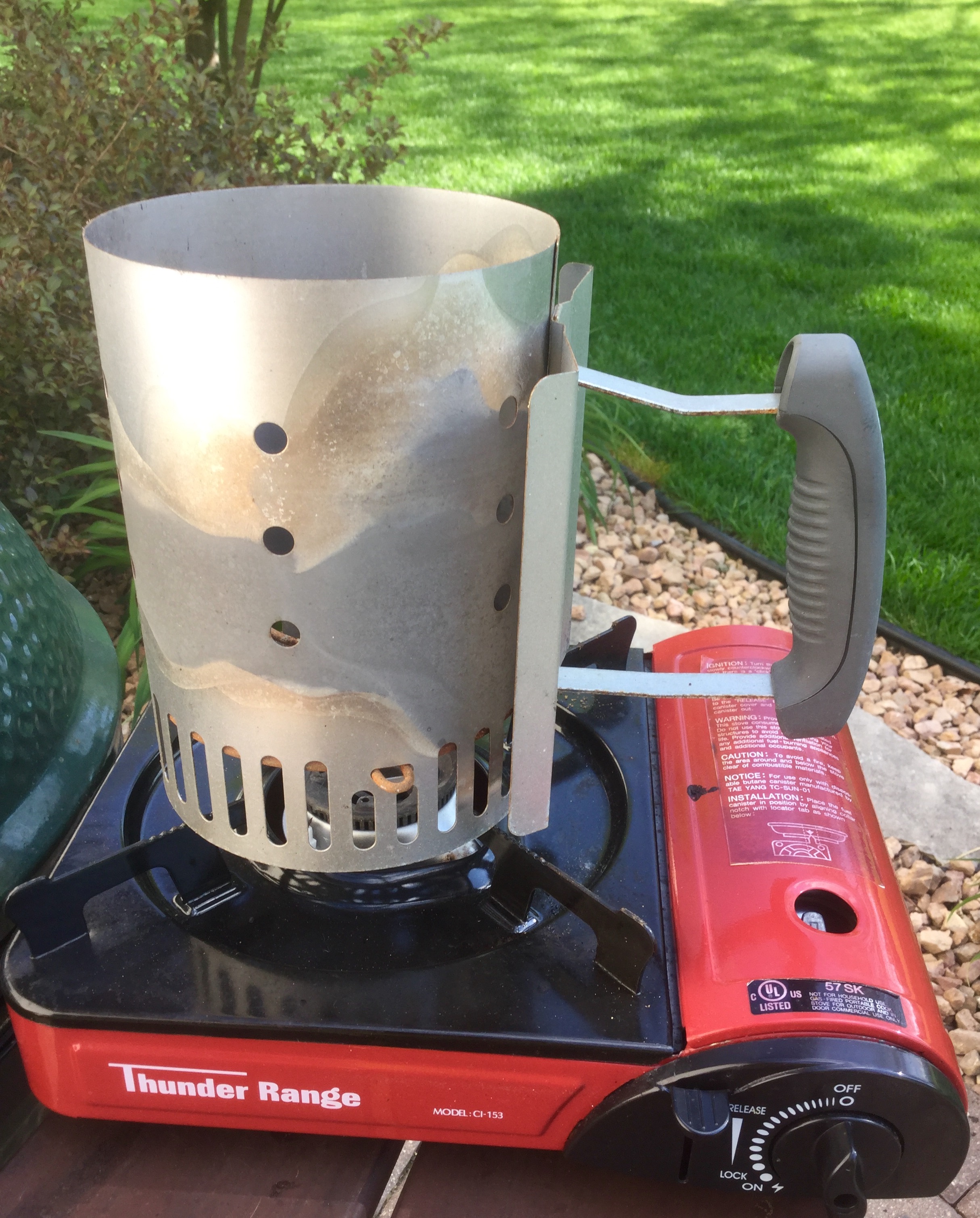I might give it a try with wood. Good to know it works for lump because that's what I use. I don't think I've ever used the cheap briquettes. Do you leave your chimney on the little stove or just until the lower lumps are burning? On the bright side, I've got something to do with my excess old newspaper instead of shredding it up and adding it to the compost bin.
