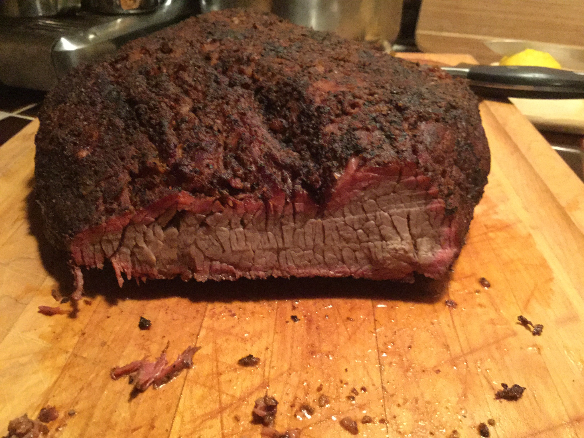 Those things are hard to cook. I have made one "Packers" brisket and I ended up finishing it off in the oven (which is actually a recommended technique from TexasBBQ, so I didn't feel too bad about it). Here is a pic of the one we made (it is bigger than it looks in the pic. It is on the biggest plate we own):It finally finished at about 11:30 pm. I cut a few slices and the flavor is really good and very juicy. The bark is pretty good too. It was a bit salty but once I get into it about an inch we will see. Since my timing was totally screwed up I didn't have time to cube up the burnt ends and finish it with a little more heat. I'll do that tonight. A freshly done brisket is now a leftover. Terrible planning on my part.