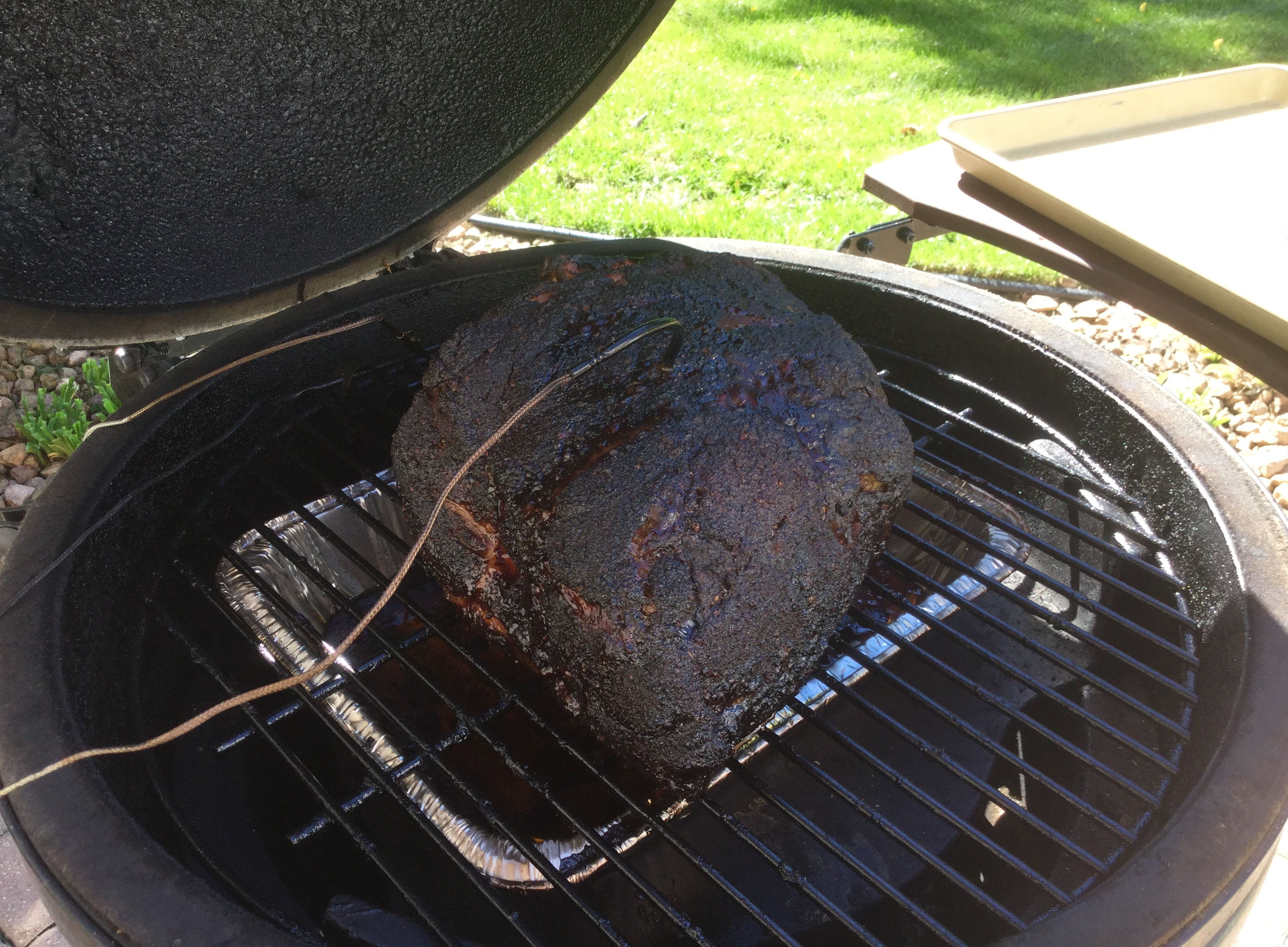 Looks good. I vary the wood, but I usually use Pecan or a combination of pecan and cherry. I use Dizzy Dust and mustard to slather it before it goes on. I try to keep it in the 225 range, but if it varies by 10 degrees either way, I typically don't bother it. It usually averages around 225, give or take. I used to stress over getting it to stay in the 205-225 range, but I don't think it makes much difference. I use Maverick wireless thermometers and try to put the bbq thermometer near the Egg's thermometer. The other goes in the thickest area of the shoulder.@Uofmtiger - this is the biggest shoulder I've ever done. It's been on 21.5 hours and it's at 198 F but not ready yet. I'm checking every 2 degrees now. I'm curious what was your pit temp and which wood do you use?