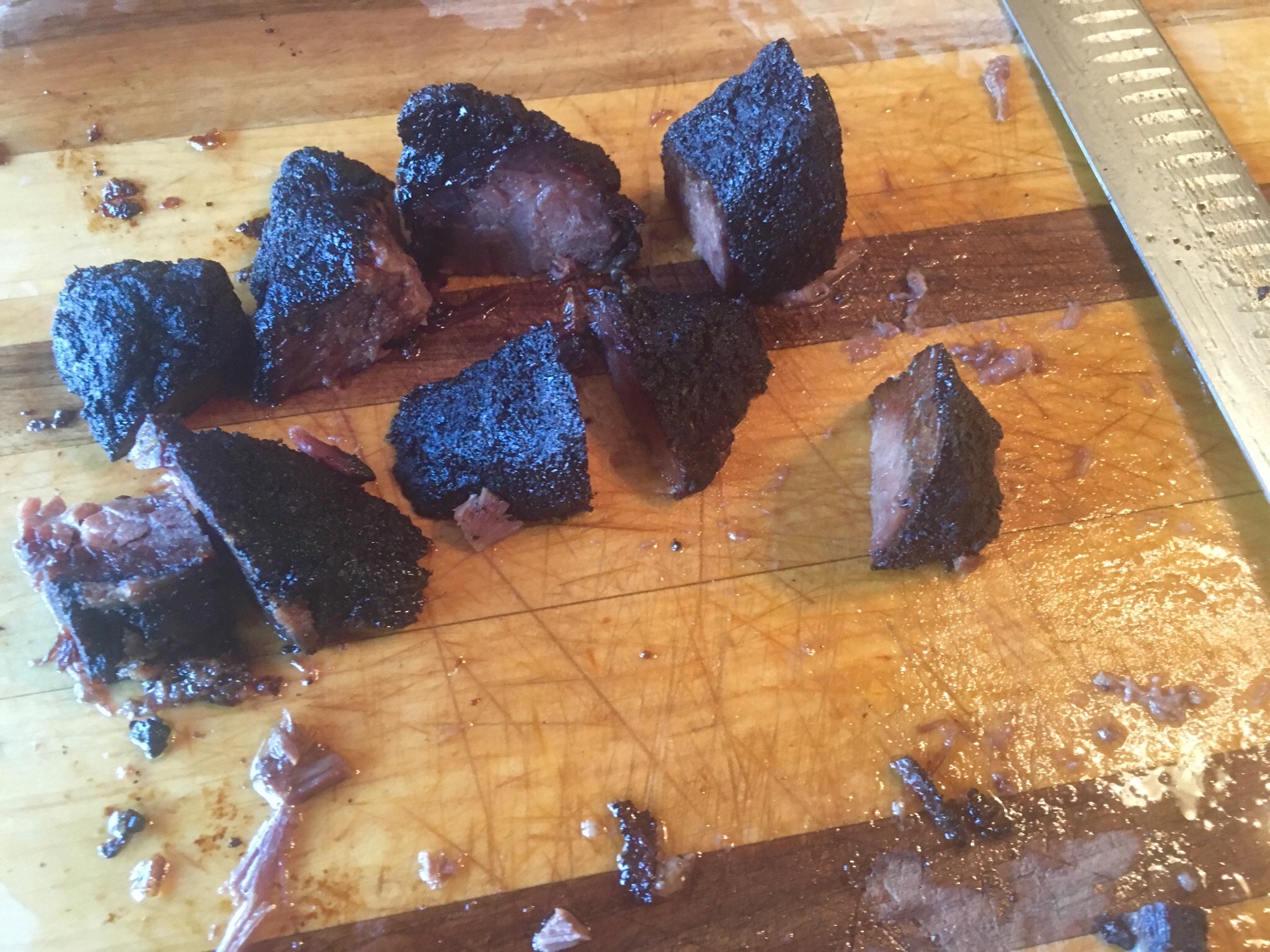 Do another salt test if you want, but let it dry for at least 12 hours before smoking. I like to smoke over pecan. I find mesquite is good but it's a bit harsher. Hickory is the same, but offers a real nice flavor. Applewood is obviously wonderful. Pecan is just smooth and has a nice taste. I smoke at 225F until internal temp is 150F. I remove, it gets wrapped in parchment paper and then foil, it sits overnight in the fridge to cool because cold bacon is easier to slice. Before I do that, I take a slice or three...for science.