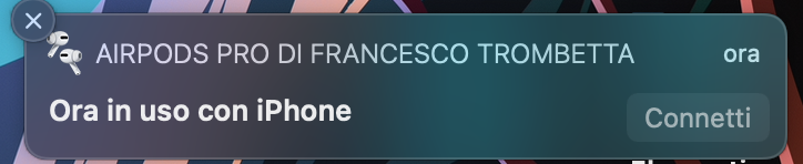 Same thing to me between Mac and iPhone. It never switches back to my Mac when AirPods are connected to the iPhone. I have to click the connect button that appears as a notification to make it work, as you can see in the first attached file.Just adding my voice here - switching fine between iOS devices, but will only switch away from Big Sur, never switches automatically to my Mac.
