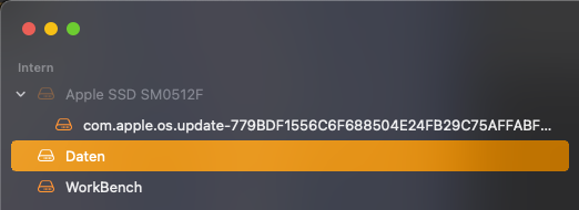 - Apple SSD SM0512 F is my main Harddrive (System is running on that partition)