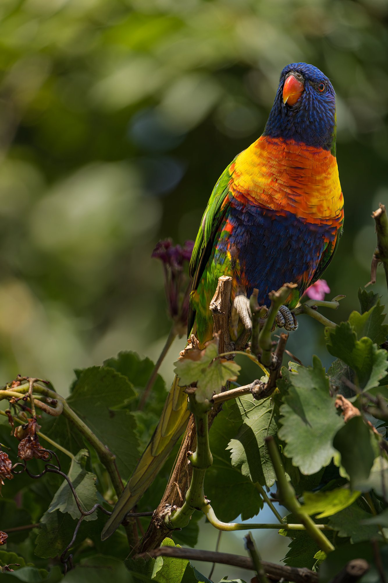 I have never really looked at topics such as this on MacRumours before. There are some great photos here. I bought a Sony A7RV about 18 months ago with, among other lenses, a Tamron 50-400. Now this is probably right down the lower end of focal length for taking bird photos but with 61MP there is room for cropping. And if you can get relatively close to the birds it's fine. Anyway, I have been doing a little bit of bird photography. This is one of the first photos I took with the camera. It is a Rainbow Lorikeet on a grape vine growing on a fence in my backyard.