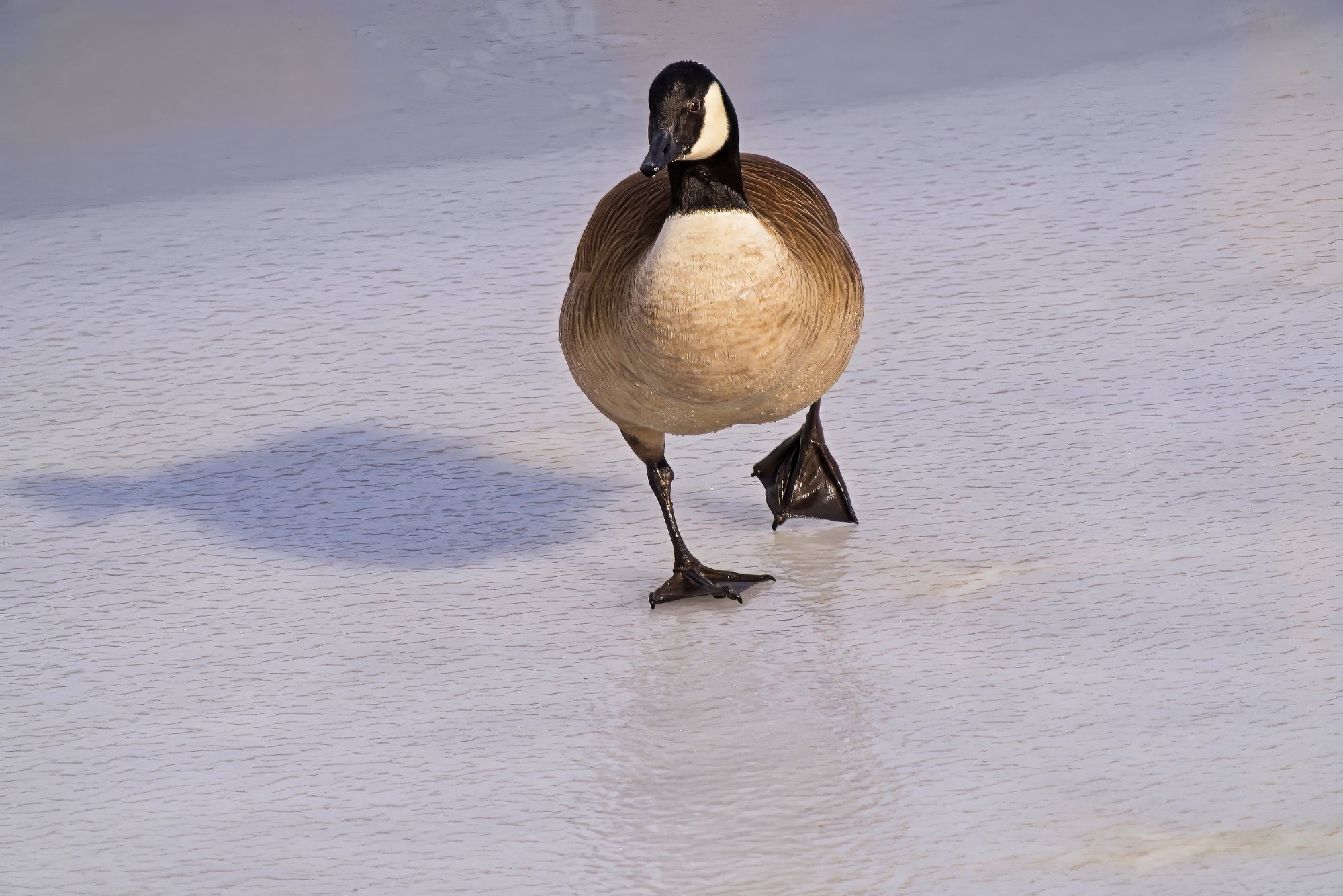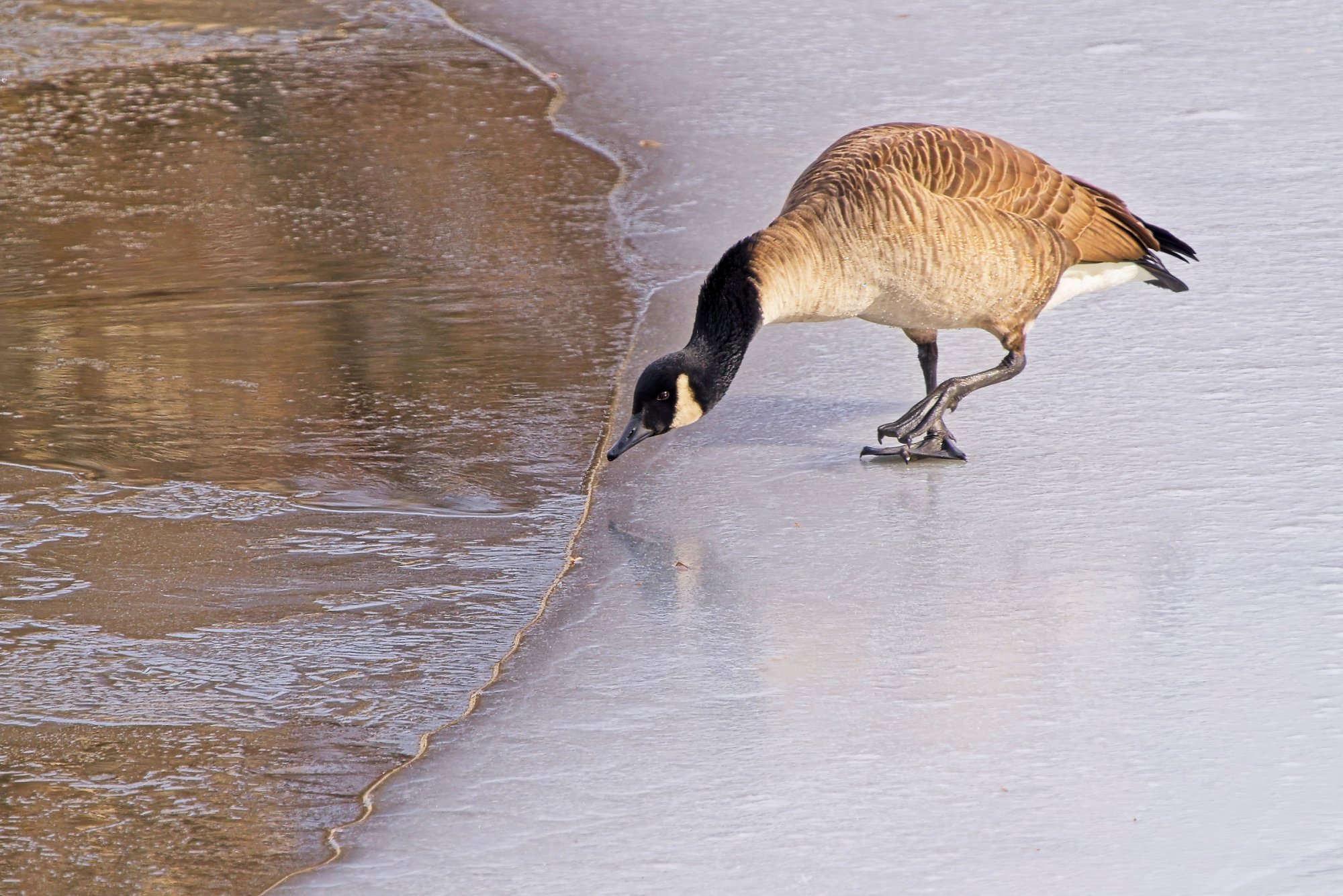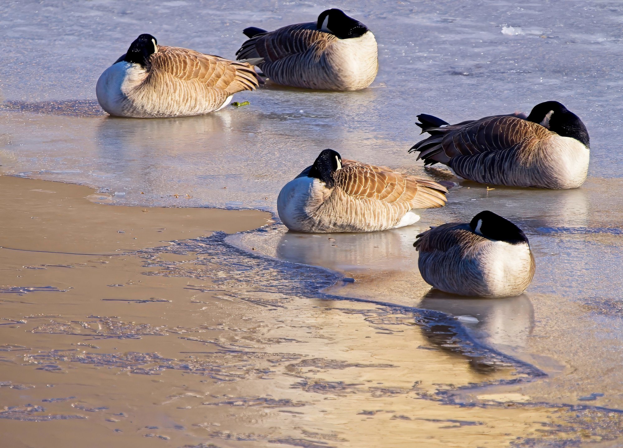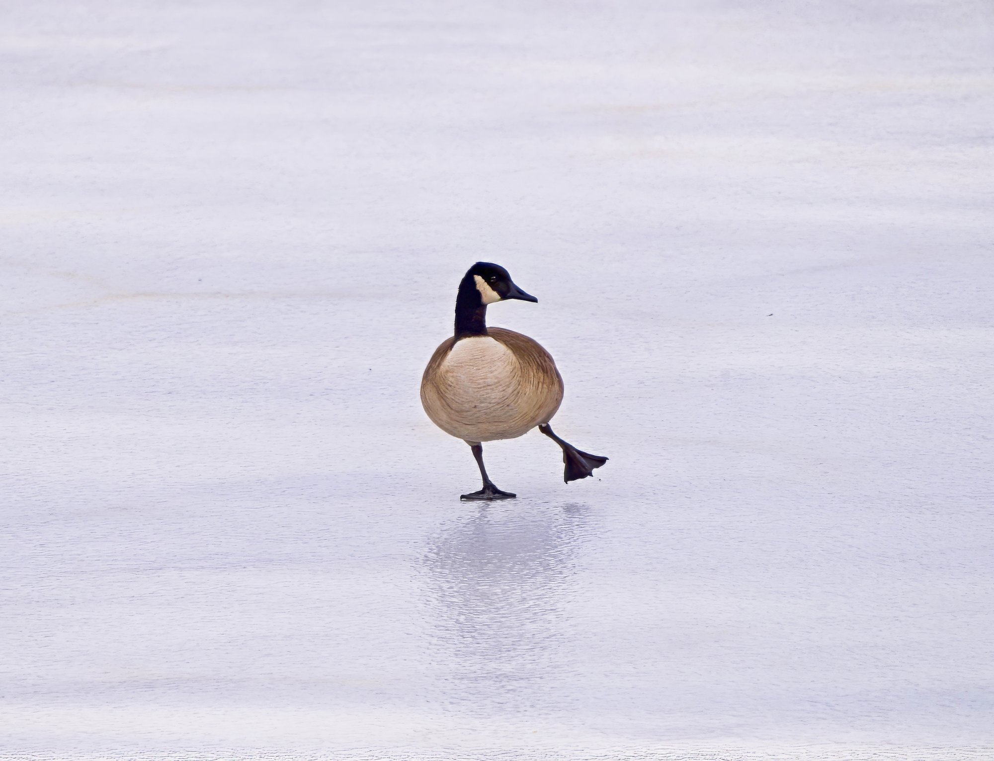 Third one is my favourite. Looks like he’s keeping his cold foot of the ice! Nicely done.It's winter on the lake and last week the geese got a real taste of it when the water turned into ice.....