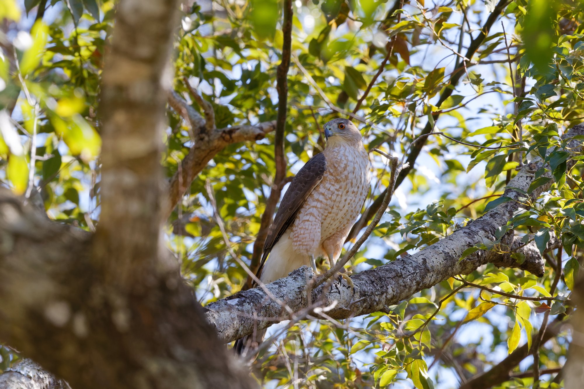Forgive me for not having the energy to check if I’ve posted this same pic earlier in the thread. I cannot tell if this is (in my photo) a Coopers Hawk or a Sharp-Shinned Hawk. The two species look almost exactly the same, and when I look up what the small differences are supposed to be I feel some from each kind apply, lol.Rare sighting of a Cooper's hawk. This one is gathering nesting material. I watched it break off branches and fly off to a nest, soon to return for more material.