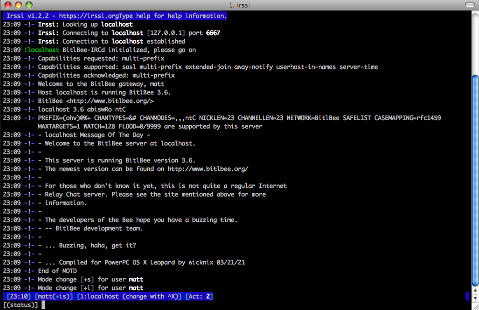 I have a problem: I followed this guide: https://mac84.net/web/discord-via-irc/I compiled and made a standalone package of Bitlbee with the Discord plugin for use on Leopard (PPC).